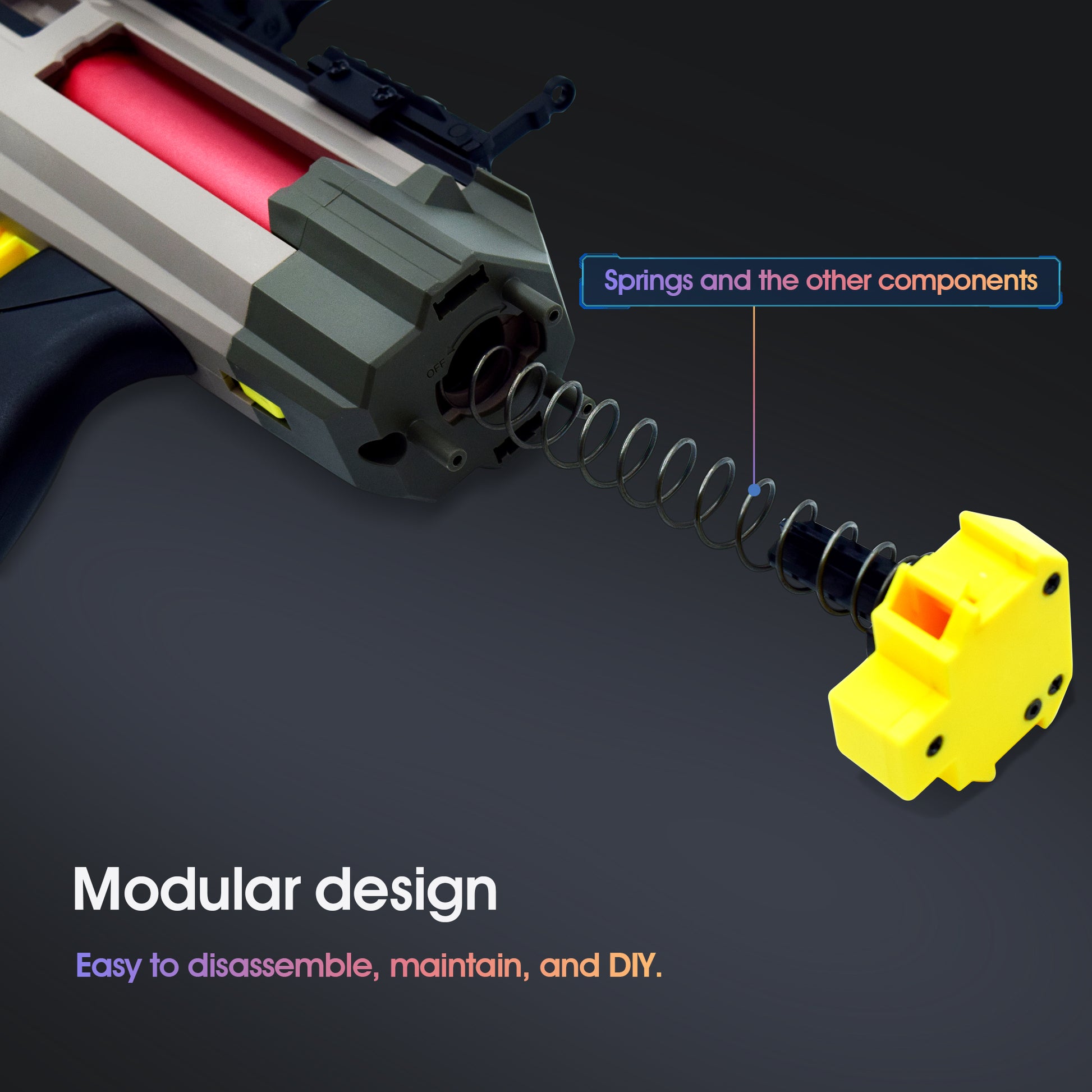The toy submachine is made of Nylon and metal,So that sturdy enough. And the shooting range of the longest distance could reach 80FT. It also allows for quick disassembly and assembly.